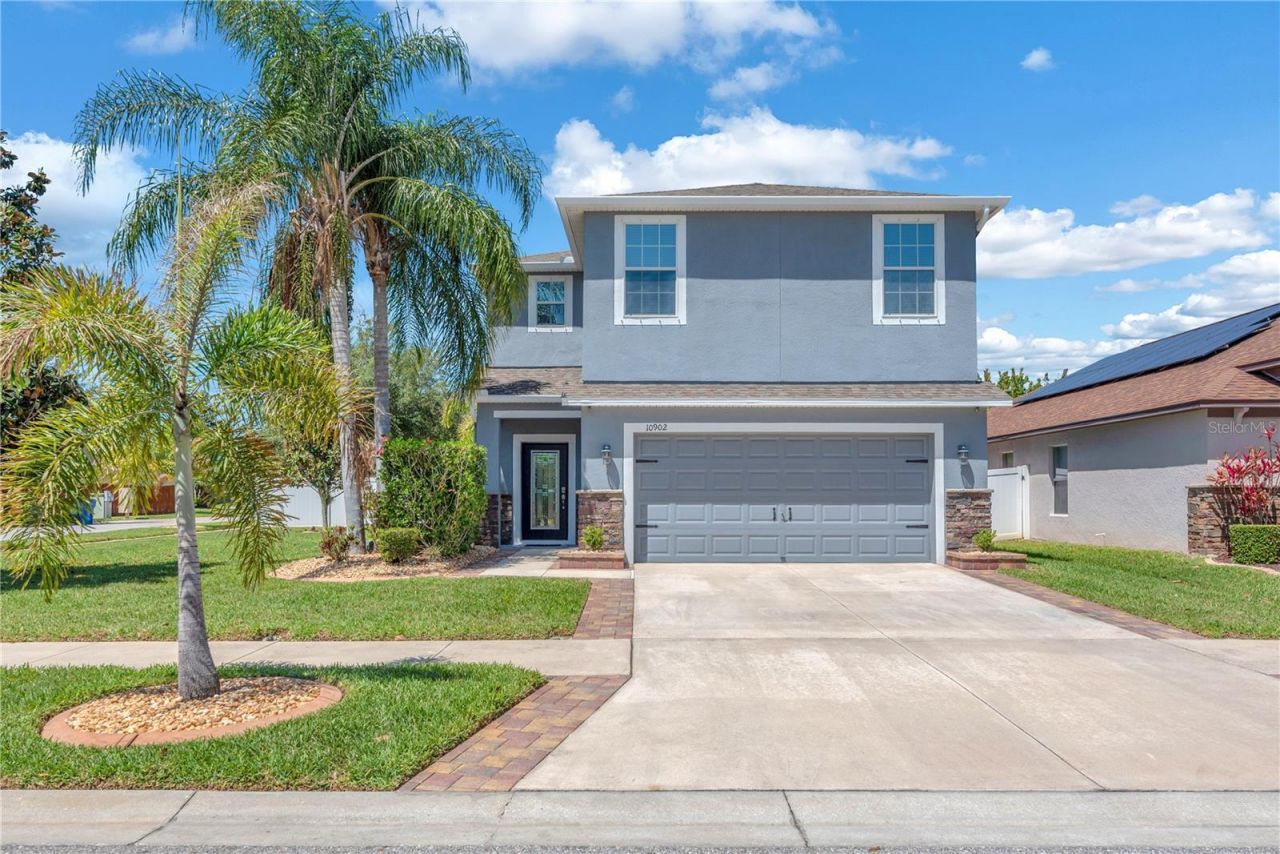 Welcome to 10902 Rainbow Pyrite Dr, where sophisticated design and a vacation-inspired lifestyle converge. This isn't just a house; it's a meticulously maintained masterpiece designed for those who demand the very best in Florida living. The Ultimate Backyard Oasis. Step through the sliders and into your private sanctuary featuring a covered & screened lanai with a shimmering solar heated saltwater pool, perfect for cooling off on warm afternoons or hosting weekend gatherings. Whether you're sunbathing on the expansive paver deck or enjoying an evening swim, this outdoor space offers the ultimate staycation experience. No carpet. A/C 2023 with a 7 year FULL warranty parts & labor will transfer to the buyer. All windows and doors have ceramic tint applied. New Water Softener w/ Filtration and Kitchen Reverse Osmosis installed in 2025. New Hot Water Heater 2025. EV charging outlet and whole house surge protection installed. The driveway / entry area features custom paver extensions and planters. Gourmet Kitchen: A chef's dream featuring GE appliances, sleek 42cabinetry with pullouts, and plenty of counter space for entertaining. From upgraded flooring to crown molding & contemporary lighting fixtures, no expense was spared in making this home feel custom. Huge 21x13 Primary Suite features a large walk in closet with en-suite bath with dual sinks, a garden tub and upgraded step in shower. The 2nd and 3rd bedroom are split by the 2nd story loft area. Ayersworth features resort style amenities such as a clubhouse, swimming pool, fitness center, basketball court and dog park. Conveniently located with easy access to I-75, I-275, Hwy 301 for easy commutes whether you are going north or south. Minutes to restaurants, shopping, & county parks. Make your appointment today!