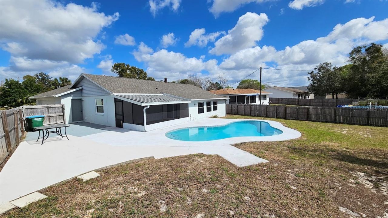 Deltona Lakes area 3 bed / 2 full bath, .33 acre corner lot Close to school, shopping & golf course Just minutes from I4 exit 111 Just over a half hour to the beach Easy drive to theme parks and Orlando Split plan with the onsuite on one side and the 2 beds and bath on the other. Master walk-in closet, tile shower, 2 vanities Whitewashed brick wood burning fireplace. Ceiling fans, updated led lights. Kidney shaped gunite inground pool 15x30 New gray shaker cabinets, quartz countertop , white subway tile backsplash. SS appliances. Large Florida room. Screen porch. Renovated. Possibility of renovation for office or 4th bed room. 2 car garage, washer and dryer, new water heater, ac recently serviced, insulation updated. New roof. Attic storage. City water, septic. Large patio, fenced in back yard. Luxury vinyl plank floor throughout New paint.