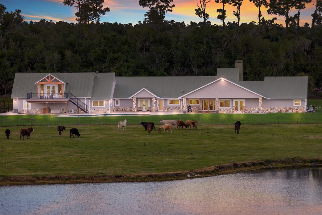 Welcome to an extraordinary private estate set on 80 pristine acres in the heart of Myakka City, just moments from the exclusive Soleta Golf Club. Framed by a grand canopy of mature oak trees, this custom-built residence offers a rare blend of refined luxury and serene countryside living. Spanning an impressive footprint, the home features five generously appointed bedrooms and six elegant bathrooms, thoughtfully designed for both elevated comfort and effortless entertaining. The primary suite serves as a true retreat, complete with a spa-inspired ensuite showcasing dual vanities, separate water closets, and expansive dual walk-in closets. A dedicated media lounge-ideal as a private theatre, game room, or fitness studio-enhances the home's lifestyle appeal. Crafted with enduring block construction and crowned by a sophisticated metal roof, the residence exudes both timeless beauty and lasting quality. At the heart of the home, the gourmet kitchen is a chef's showpiece, featuring granite surfaces, an oversized island with dual sinks, a farmhouse apron sink, and a professional-grade six-burner Wolf gas range with griddle and hood. The open-concept design flows seamlessly into the dining and living spaces, where engineered hardwood floors and a gas fireplace with designer tile surround create an inviting yet upscale ambiance. Outdoors, a resort-style oasis awaits. The striking 50' x 24' custom pool is perfectly positioned to capture sweeping views of the surrounding landscape and is complemented by integrated outdoor audio and a gas connection for al fresco entertaining. Beyond, the estate reveals a picturesque four-acre pond and a private 300-yard shooting range, offering a unique blend of recreation and tranquility. Designed with versatility in mind, each bedroom enjoys its own ensuite bath and ceiling fan for ultimate privacy. The property also includes a private interior studio apartment, as well as a full guest residence above the garage-complete with its own kitchen, living area, and a newly upgraded Trex deck overlooking the pool. With no deed restrictions or HOA, this exceptional property offers complete freedom to embrace a luxury rural lifestyle, whether accommodating livestock or simply enjoying the expansive grounds. A gated entrance ensures both privacy and security, while convenient access to Interstate 75 and Lakewood Ranch places world-class amenities within easy reach. This is more than a home-it's a legacy estate where elegance, space, and lifestyle converge.