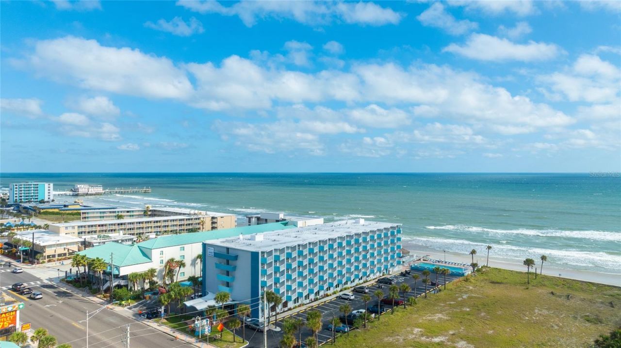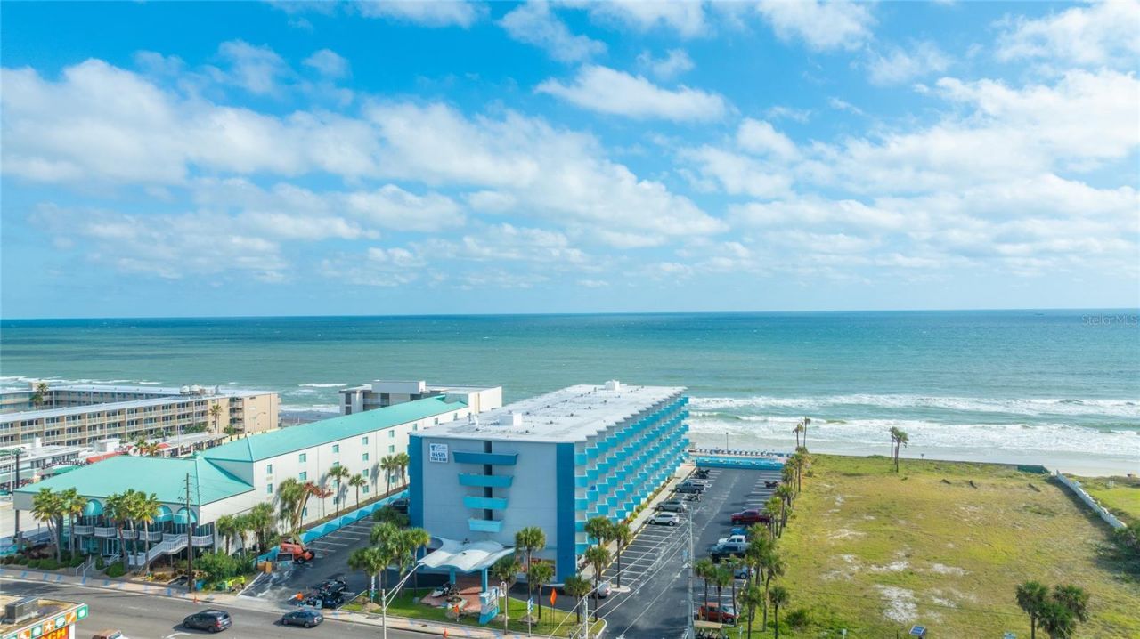 Located in the desirable Fountains Beach Resort, this oceanfront condo offers stunning direct views of the world-famous Daytona Beach. Watch pelicans glide and dolphins play from your private balcony. The unit has fully upgraded bathroom. The spacious living area features a king size bed while the sofa converts to a twin-size sleeper. A fully equipped upgraded galley kitchen makes meals easy and convenient.Step right onto the sand and take a short beach walk to the Boardwalk and Pier, home to favorites like Joe's Crab Shack and The Roof, offering live music and great dining. Or simply relax poolside and soak in the coastal atmosphere. The property also features new hurricane impact windows and a newer HVAC unit with 4 more years of warranty on it. Whether you're seeking a strong income-producing property or your own personal beachfront retreat, this condo delivers. HOA dues include all utilities, building hurricane insurance, cable, high-speed internet, fitness room, sauna, heated pool, and hot tub. All furnishings, linens, and kitchenware convey, making this a true turnkey opportunity. Their are many future bookings in place that convey with the property.