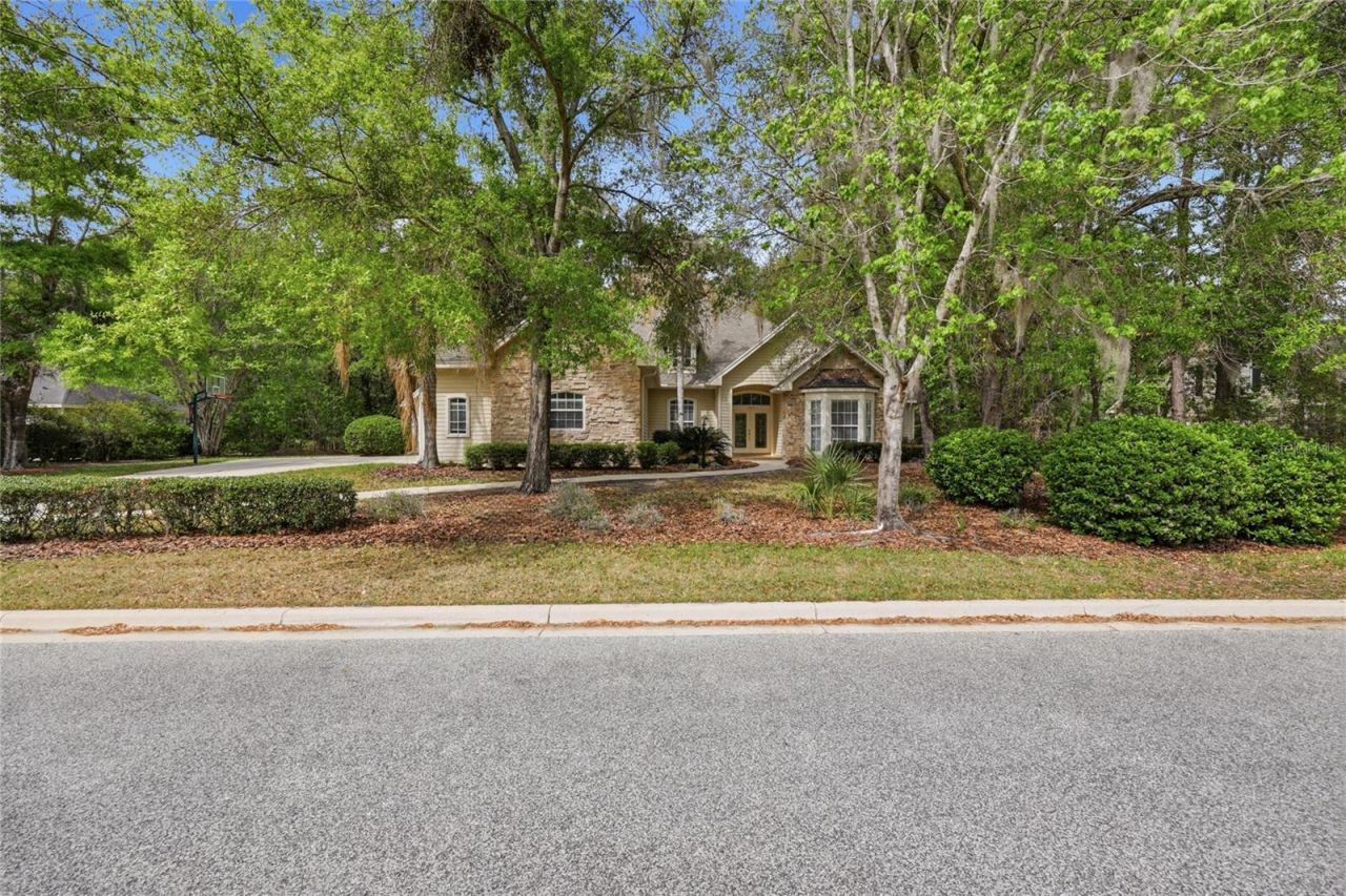 One or more photos have been virtually staged. Majestic oaks and a scattering of palm trees provide the setting for this beautiful five bedroom 4 1/2 bath pool home in Millington subdivisioin of Haile Plantation. The exterior is hardiboard, with stacked stone accents and a large bay window at the front of the home. As you enter the tiled foyer, there is a study to the right, with a high ceiling, a wide bay window and a large storage closet. The dining room is to the left of the entry foyer, with a high ceiling and windows that look out to the front yard. The formal living room has wood floors and French doors that lead to the screened pool deck. The kitchen has wood cabinets, some with glass fronts, granite countertops, a central island and a long breakfast bar that can accommodate six for quick meals and snacks. The stainless-steel appliances include a side-by-side KitchenAid refrigerator/freezer, with a water and ice dispenser, a KitchenAid wall oven, with a microwave above, a KitchenAid dishwasher, and a double stainless-steel sink, with a gooseneck faucet. Adjacent to the kitchen is a light-filled breakfast area, surrounded by windows that reveal a view of the pool. The family room has a soaring ceiling and a wood-burning fireplace, flanked on either side by cathedral-shaped windows and built-in storage cabinets. The principal bedroom has French doors that open onto the pool area. The adjacent bathroom has double sinks and vanities, a stall shower, an enclosed WC and an oval shaped jetted tub, with a glass block window above to usher in natural light. A huge walk-in closet provides ample hanging and shelf space on multiple racks. Three more bedrooms are on the first floor, with two sharing a Jack and Jill bath and one having its own private bath. The laundry room is conveniently located adjacent to these bedrooms and has a Kenmore washer and dryer, a large soaking sink, cabinets for storing cleaning supplies and a built-in ironing board. Stairs lead up to the fifth bedroom, which could also be a home office or playroom, with an expansive closet and a bathroom with a stall shower. Crown molding adds a note of elegance to the d?cor and most of the rooms have paddle fans and recessed can lighting. The screen pool and spa are surrounded by lush landscaping and views of the woods. The three-car garage offers additional storage space and the house got a new roof in 2024 and a new HVAC unit in 2021. The extensive trail system and tree-lined streets of Haile Plantation provide many areas for walking and biking. The Village Center is conveniently located to Millington, for strolling, dining and shopping. Hawkstone Country Club offers several levels of membership for those interested in tennis, golf or the fitness center. The University of Florida, the UF Medical Center, North Florida Regional Medical Center and several parks and nature preserves are all with a short drive of Haile Plantation.