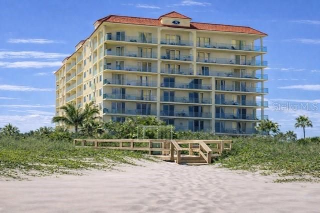 One or more photo(s) has been virtually staged. Experience costal living at its finest with this stunning ocean-view condo located in the heart of Cocoa Beach. This beautifully designed residence offers 3 bedrooms and 3 bathrooms, combining comfort, elegance and true beach lifestyle. Wood flooring throughout, bringing warmth and continuity to every space. Enjoy breathtaking views of the Atlantic from your large wraparound balcony, perfect for sunrise coffee or relaxing evenings. The living and dining areas are filled with natural light, creating a seamless connection to the outdoors. The kitchen is designed with wood cabinetry, granite countertops, and stainless-steel appliances, combining durability with a clean elegant look. The generously sized rooms are designated for comfort and privacy. Two en-suite bedrooms with walk-in closets. The primary suite offers views of the ocean, two large walk-in closets, and a spacious master bathroom with two separate vanities for added convenience, a full-size bathtub, and a walk-in shower with multiple shower heads. A large laundry room adds functionality to the home. The den/study room provides additional flexibility and can easily function as a home office, media room, or playroom, adapting to different lifestyle needs. The building provides a gated entrance with ample visitors parking. The unit includes one assigned parking space inside the garage and one additional outside space. Residents enjoy a full suite of amenities: swimming pool and jacuzzi with ocean views, private beach access, a well-designed BBQ area with plenty of tables and seating, and an outdoor fireplace lounge area, a fitness center with a dry sauna and a steam room. This condo is located approximately 1 hour from Orlando International Airport and the Orlando theme parks. 3 miles from the Port Canaveral Cruise terminal, within close proximity to the Cocoa Beach Pier, a local landmark, and just minutes away from a wide variety of restaurants, shops, and everyday conveniences, making this location both practical and highly desirable.