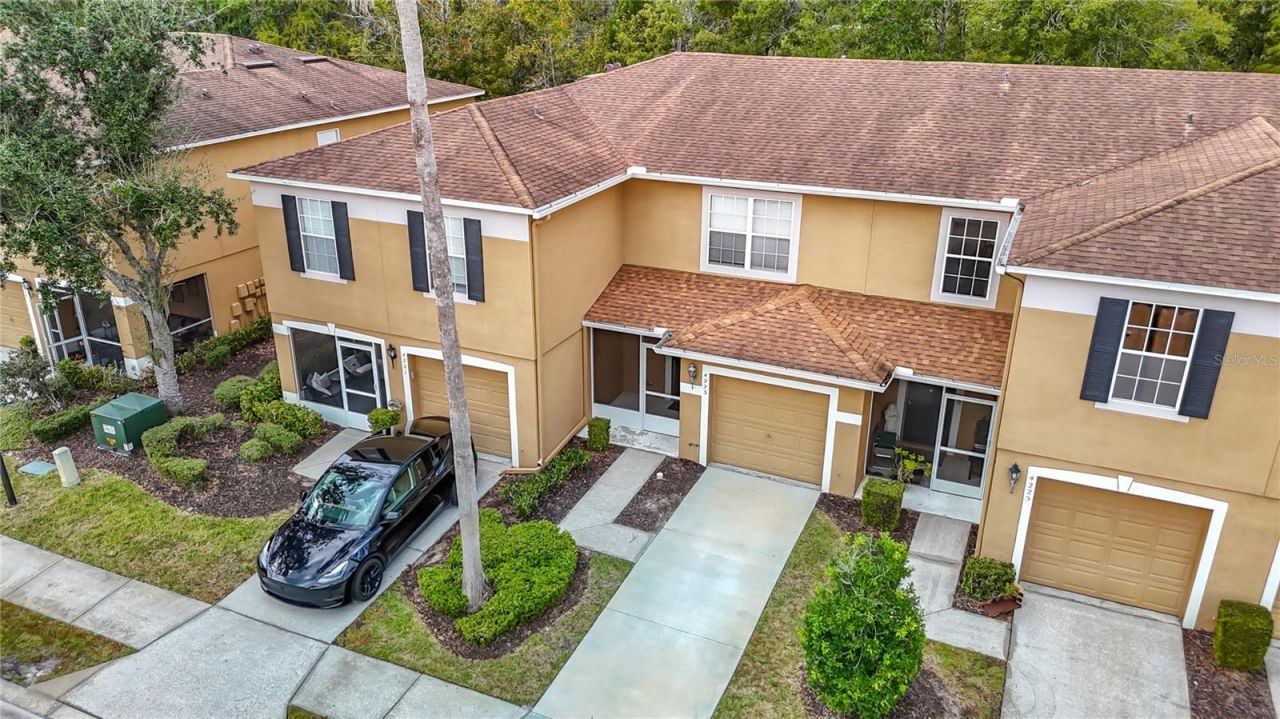 Welcome to Edgewater at Grand Oaks, a highly sought-after community in the thriving Land O Lakes/Wesley Chapel area. This lovely townhome is situated in a highly convenient location just 5 MINUTES from the TAMPA OUTLETS, COSTCO and MAJOR HIGHWAYS (I-275 & SR-75)! Also nearby are A Plus Rated schools, The KRATE, WIREGRASS MALL, and tons of fine dining/entertainment options. Enjoy the convenience of a community pool, LAWN MAINTENANCE and EXTERIOR MAINTENANCE included with a LOW HOA. This fresh and updated townhome offers 2 generously sized bedrooms, each having their own en-suite providing privacy and comfort. Each bathroom features NEW QUARTZ COUNTERTOPS and FIXTURES, with a half bath on the first floor. For added convenience, the washer and dryer are on the second floor, streamlining your laundry routine. Kitchen updates include NEW QUARTZ COUNTERTOPS and NEW STAINLESS STEEL APPLIANCES (Range, Microwave, Refrigerator, and Dishwasher). NEW LUXURY VINYL PLANK (LVP) FLOORING on the first floor and NEW CARPETING on the stairway, primary and secondary bedrooms, all walk-in closets, and hallway. Enjoy NEWLY PAINTED interior walls, ceilings and trim. Additional property highlights include attached one car garage with NEW ELECTRIC GARAGE DOOR OPENER. Peace of mind with a NEWER WATER HEATER (2023) and HVAC replaced in 2020. The exterior of the townhome was repainted in 2021 and roof replaced in 2019. Relax in the screened-in front entranceway or enjoy the conservation area from the back patio. This is a rare opportunity to own a move-in ready townhome with a low HOA, in a prime location. Perfect for homeowners or investors anxious to experience Florida living. Call for your private showing.