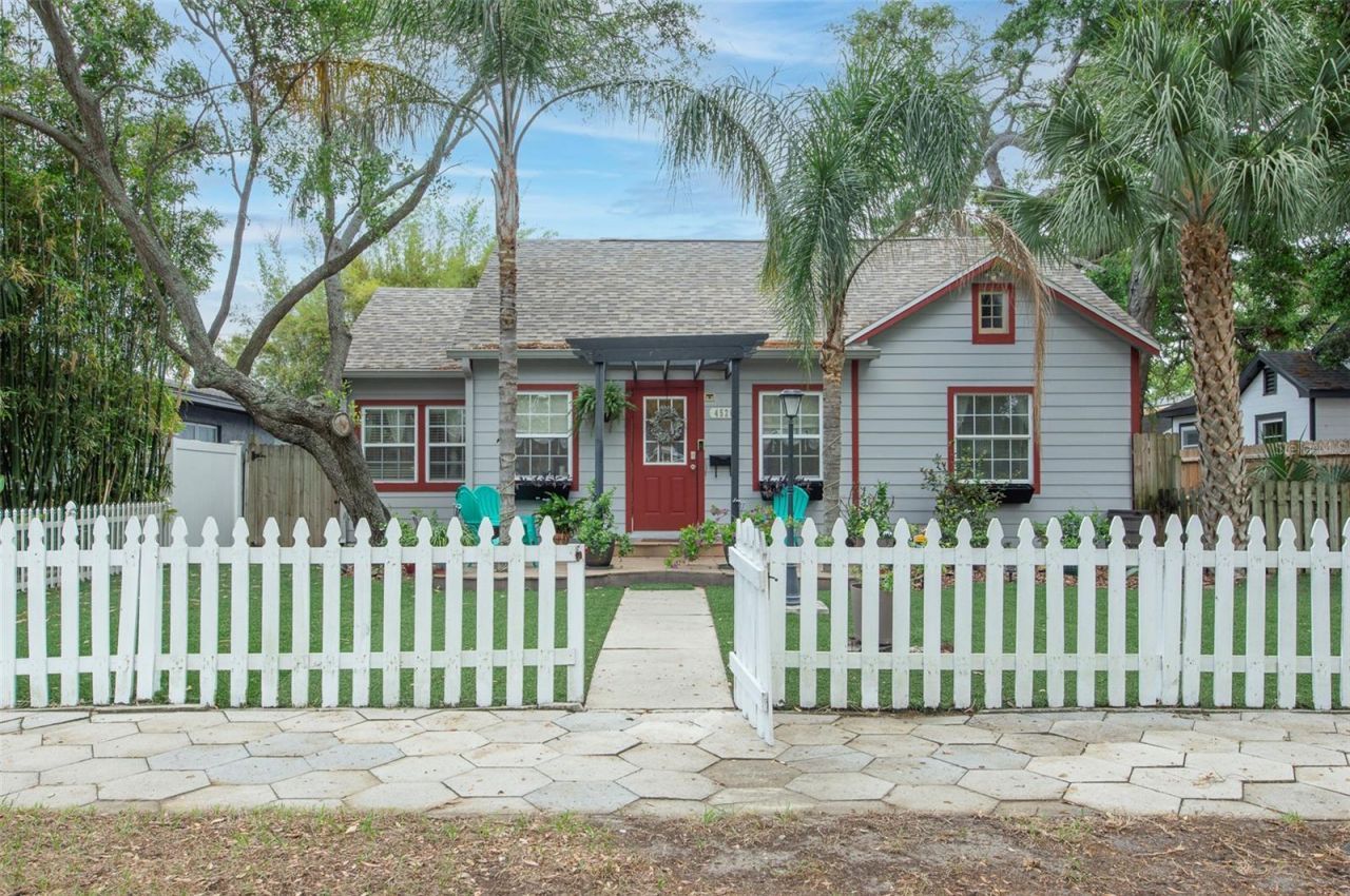 This beautifully updated 3-bedroom, 2-bathroom home is full of character and modern upgrades. From the moment you arrive, you'll be drawn in by the exceptional curb appeal featuring a white picket fence, low-maintenance synthetic grass, new cement siding, and a welcoming front porch-perfect for enjoying your morning coffee.Step inside through a bright sunroom entry and continue through double French doors into a spacious living room with a separate dining area. Original hardwood floors, abundant natural light, and timeless charm create a warm and inviting atmosphere throughout the home.The split floor plan offers two guest bedrooms with a shared bath at the front of the home, while the private primary suite is tucked away for added privacy. Enter through a stylish barn door to find built-in shelving, a walk-in closet, and a beautiful ensuite bathroom featuring a dual vanity and a spa-inspired walk-in shower with a rainfall showerhead and built-in bench.The kitchen is light and bright with stainless steel appliances and ample natural light, making it ideal for everyday living and entertaining.Step outside to your own private backyard oasis featuring an above-ground pool surrounded by a custom deck, outdoor dining space, and plenty of room to relax or host guests. A dedicated dog run along the side of the home adds extra convenience for pet owners.The property also includes a 1-car garage with two additional parking spaces accessible from the rear alley. Additional upgrades include hurricane impact windows, a new security system, updated electrical panel, and a new washer and dryer located in the garage. Major systems have been updated with a roof in 2020, water heater in 2021, sewer line replaced in 2024, and HVAC updated in 2026.Ideally located within walking distance to Central Ave and the Pinellas Trail, and less than 15 minutes to downtown St. Petersburg and the Gulf beaches, this home offers the perfect blend of charm, convenience, and modern living. Furnishings are optional.Don't miss this move-in ready gem in one of St. Pete's most desirable locations!