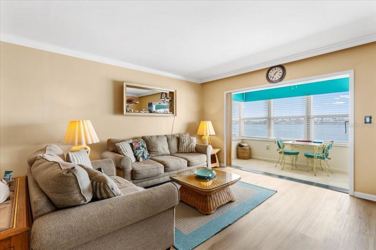 WATERFRONT views like this are meant to be experienced in person. Welcome to a beautifully furnished first-floor end unit in Somerset House at Point Brittany, where wide-open water views and effortless coastal living come together in a way that feels special from the moment you walk in. Natural light, an open layout, and an uninterrupted waterfront backdrop create a setting that feels both calming and energizing. This move-in-ready residence offers the comfort of easy first-floor living along with the privacy and added light of an end-unit location. Inside, luxury vinyl plank flooring runs throughout, complemented by updated systems including a new A/C, water heater, and dishwasher, as well as impact windows and premium cordless blinds for added comfort and convenience. The spacious living and dining areas flow seamlessly into an expansive heated and cooled sunroom that spans the width of the home, creating flexible year-round living space with room to relax, dine, entertain, and fully enjoy the view. With access from both the main living area and the primary suite, this waterfront space becomes a true extension of the home. The split-bedroom floor plan offers privacy for owners and guests, while both bedrooms feature walk-in closets and both bathrooms have been tastefully updated. The kitchen is neutral, functional, and offers generous cabinet storage, and the fully furnished interior makes settling in simple from day one. Additional conveniences include assigned parking with easy access, same-floor laundry just across the breezeway, and extra storage. Located within the gated waterfront community of Point Brittany, residents enjoy resort-style amenities including pools, walking paths, pickleball, and the Residents Club, all just minutes from Gulf beaches, downtown St. Petersburg, and Tampa International Airport. Special assessments have been paid, adding even more value to this exceptional opportunity. Whether you're looking for a full-time residence, seasonal escape, or lock-and-leave waterfront retreat, this is a home that stands out not only for its layout and lifestyle, but for the view that truly sets it apart. Schedule a private tour of this showstopper today!
