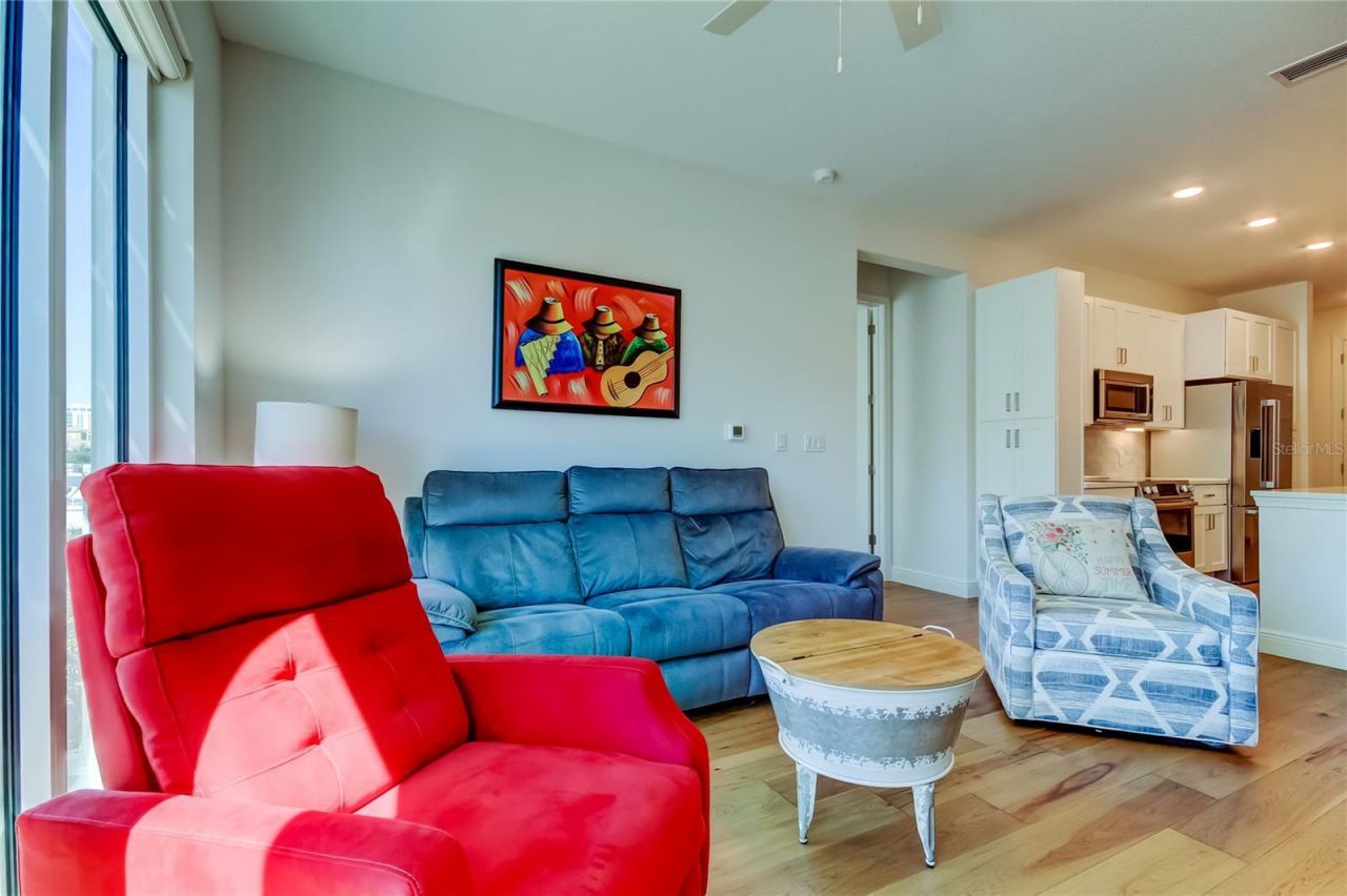 Significant price repositioning - now offered at $699,000, creating a compelling opportunity for buyers seeking newer construction and walkable downtown living. Located in Castille Urbana, this residence is ideal for those who value a low-maintenance lifestyle close to Beach Drive, the Pier, restaurants, and cultural attractions.This bright, open 3rd-floor condo features soaring 10' ceilings, engineered hardwood floors, and floor-to-ceiling windows that fill the space with natural light. The chef's kitchen offers BOSCH stainless appliances, quartz countertops, a large island, and shaker cabinetry.The spacious primary suite includes a spa-inspired bath with Carrara marble shower, dual vanities, and a large walk-in closet. A private guest bedroom, bonus room, full laundry, and extra storage complete the layout. Hurricane-rated windows and doors, fob-secured entry, and gated garage parking provide peace of mind. Pet-friendly amenities include a fitness center, and community room.Move-in ready and designed for effortless living in the heart of downtown St. Petersburg.